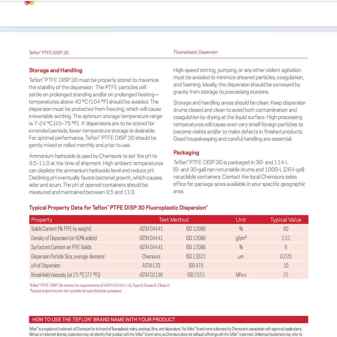 铁氟龙水性溶液PTFE乳液杜邦DISP30 60%固体含量聚四氟乙烯自然干