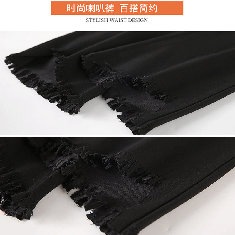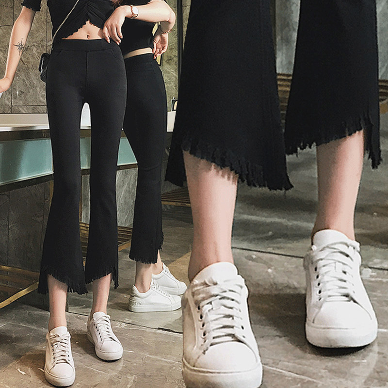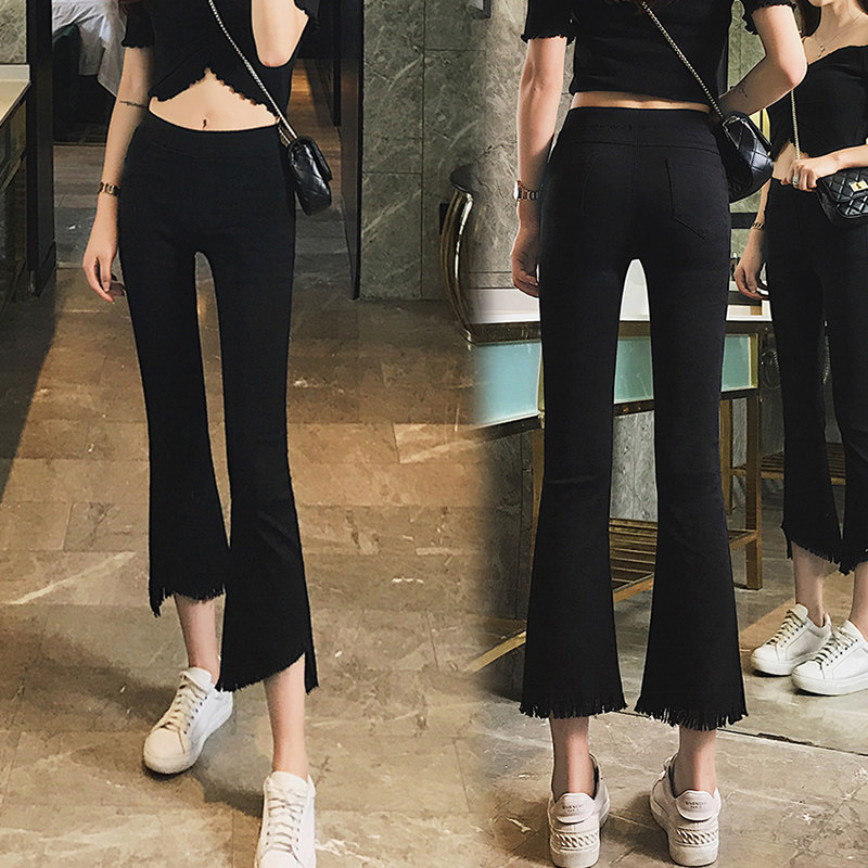 松紧腰微喇女裤嗽叭裤新款微喇小黑裤八分小个子9分女式微辣喇裤