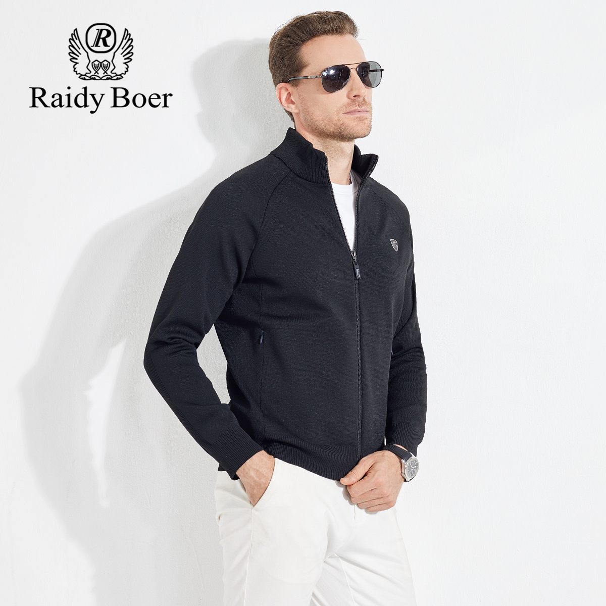 雷迪波尔男装夹克春秋新品针织立领弹力修身运动休闲拉链男士外套