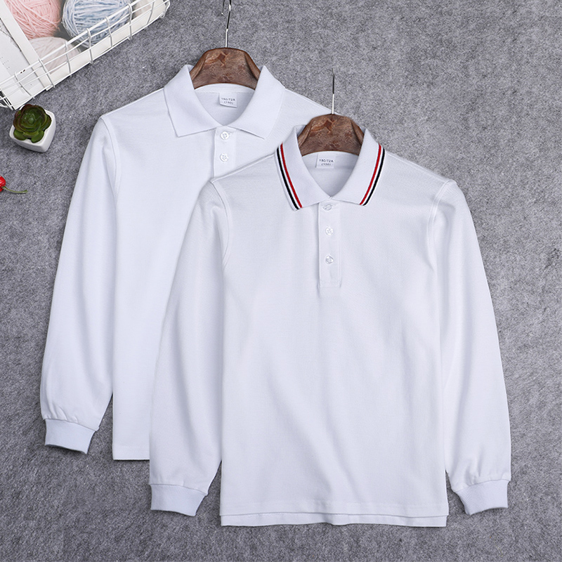 男童白色t恤纯棉春秋翻领中大童女童儿童中小学生校服polo衫长袖