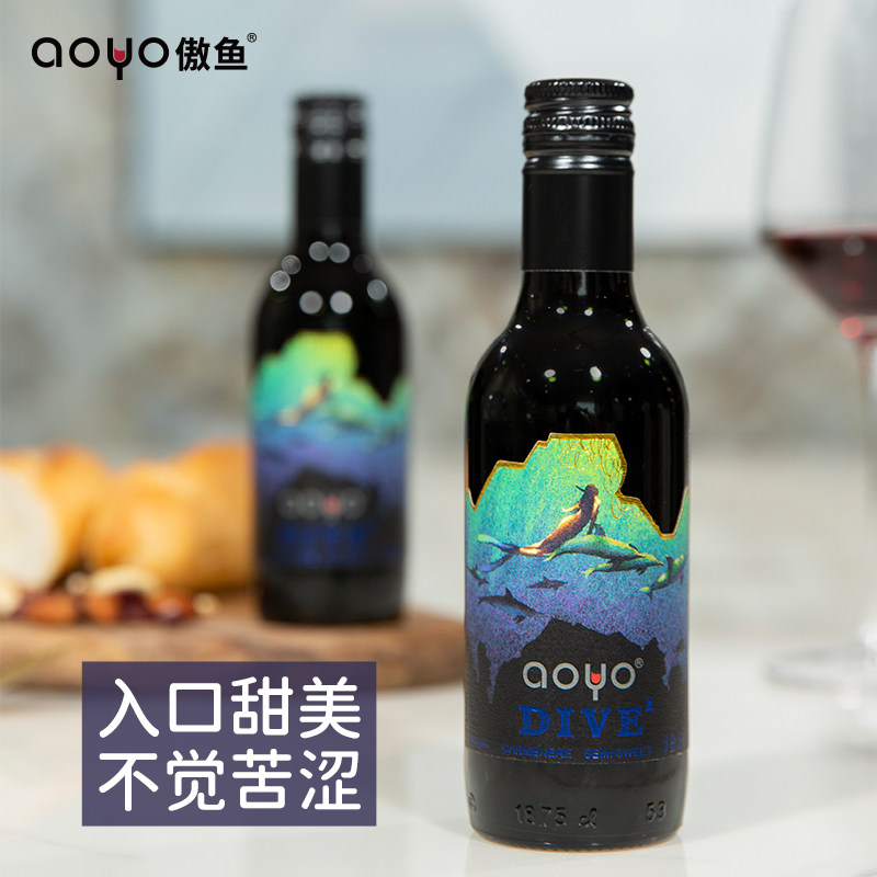 傲鱼智利原瓶进口红酒半甜葡萄酒礼盒装187ml*6整箱