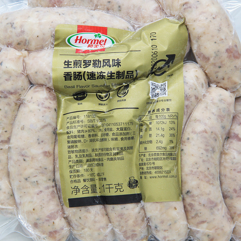 荷美尔生煎罗勒风味香肠1kg约17根西式生制水煮肠油煎猪肉肠商用