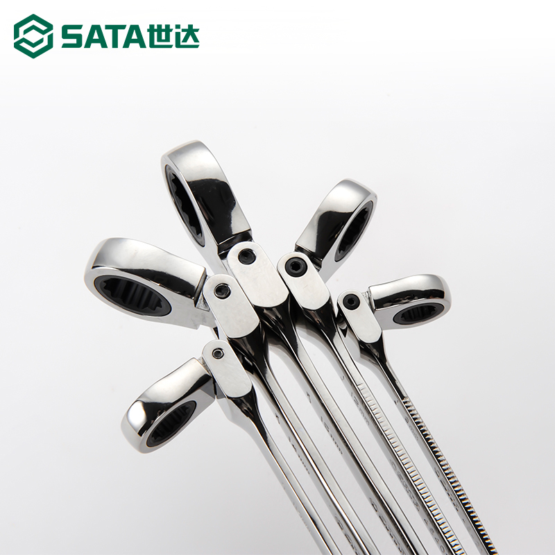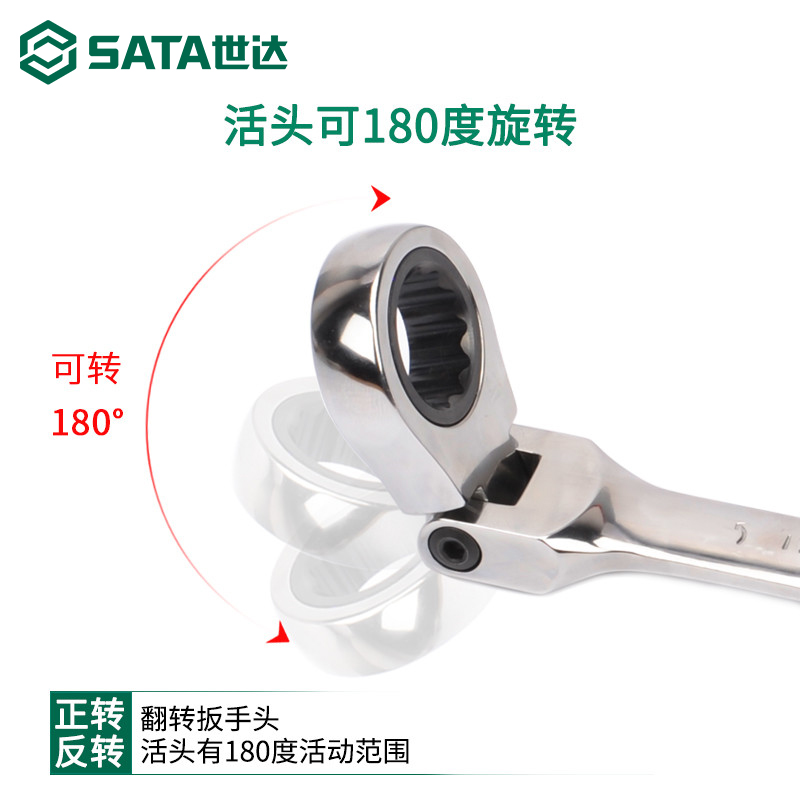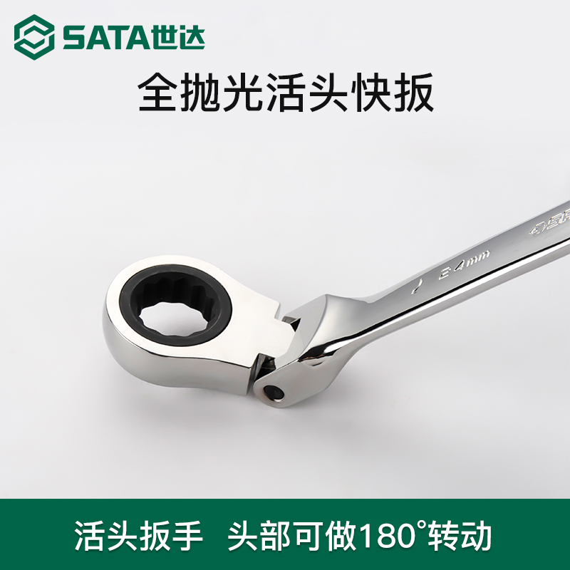 Sata世达梅开棘轮快速两用扳手活头梅花开口翻折两用快扳工具套装