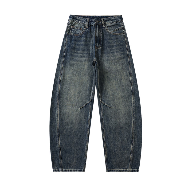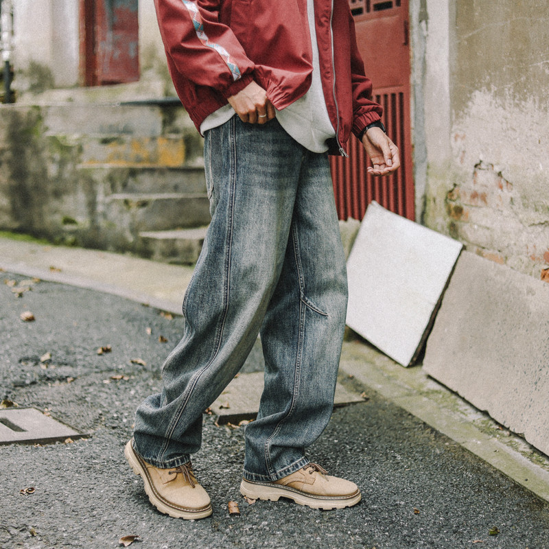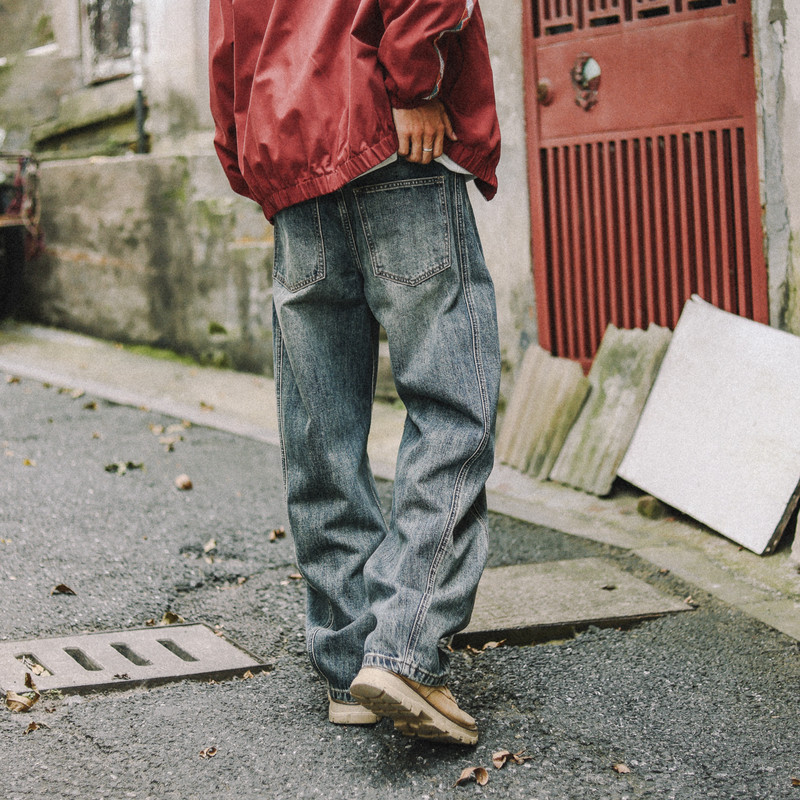 兔先森春秋美式复古高街弯刀牛仔裤男水洗做旧宽松阔腿休闲裤长裤