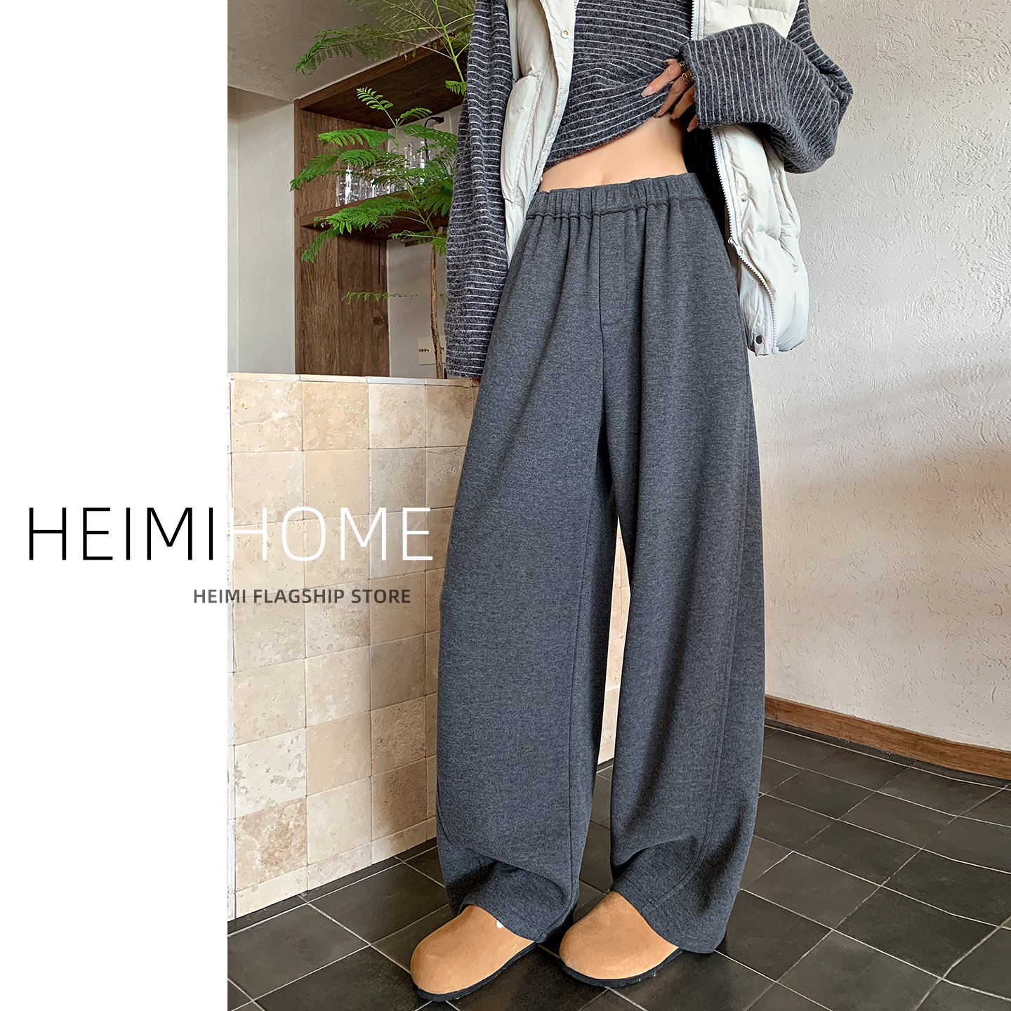 米白色羊绒弯刀裤女秋冬加厚加绒窄版香蕉阔腿裤松弛感直筒休闲裤