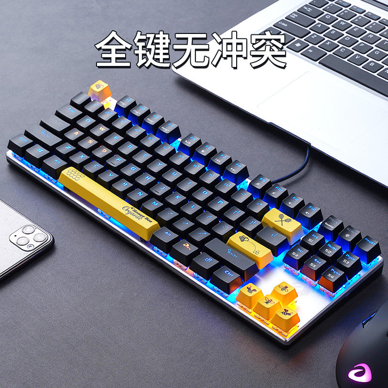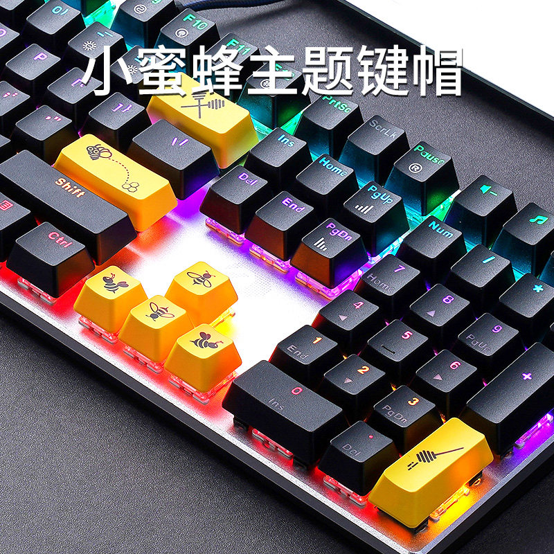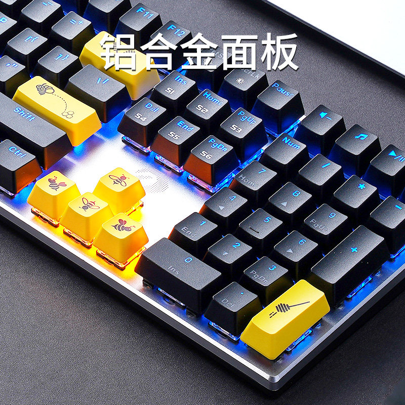 达尔优牧马人EK815小蜜蜂有线机械键盘游戏办公黑轴青轴87/108键