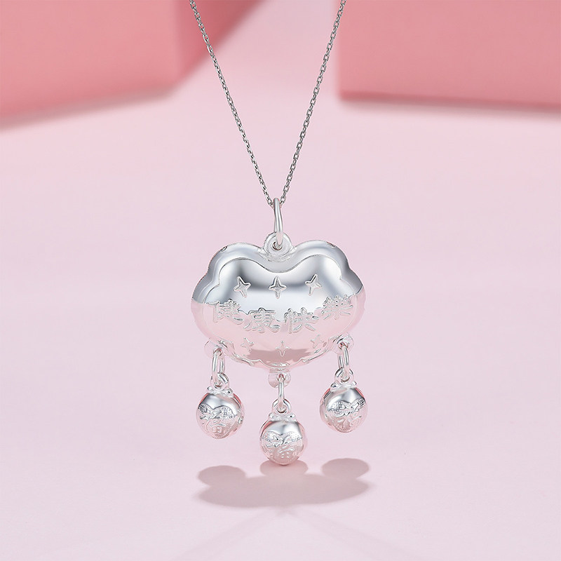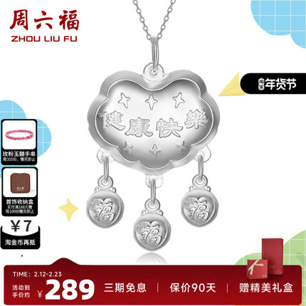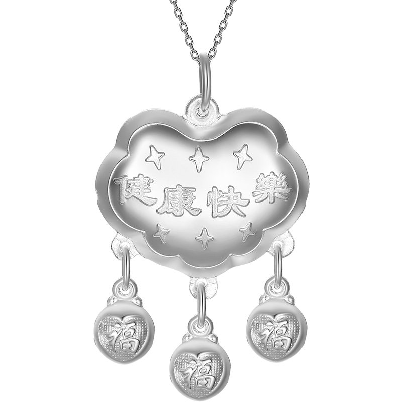周六福S999足银长命锁婴儿健康快乐福运之星宝宝吊坠满月周岁礼物