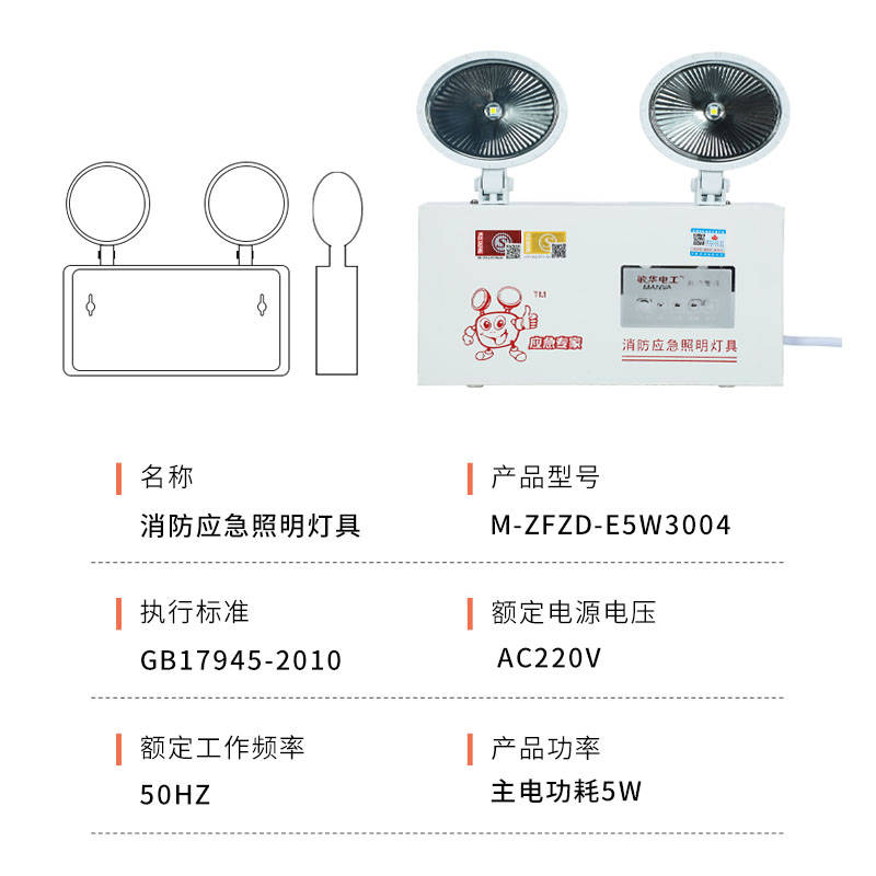 敏华劳士消防应急灯应急照明灯led停电疏散安全出口双头应急灯