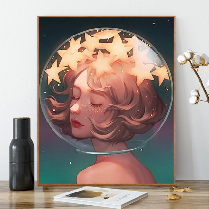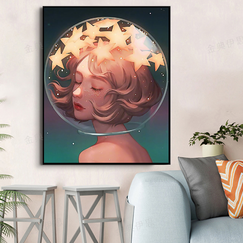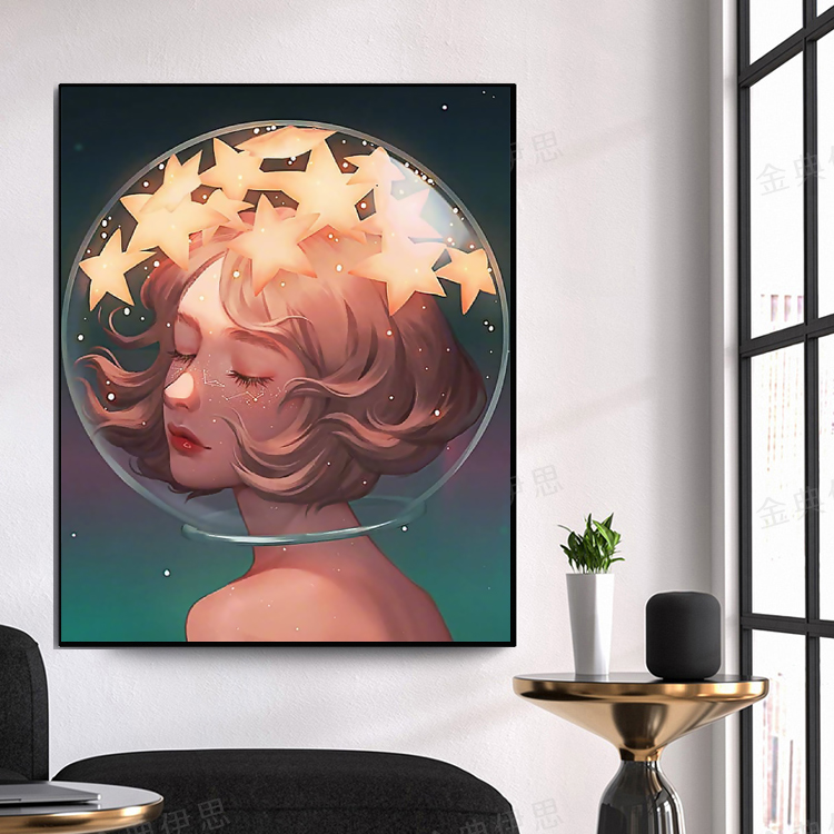 5d点贴钻十字绣2025年新款简约北欧风卧室钻石画小幅简单女孩满钻