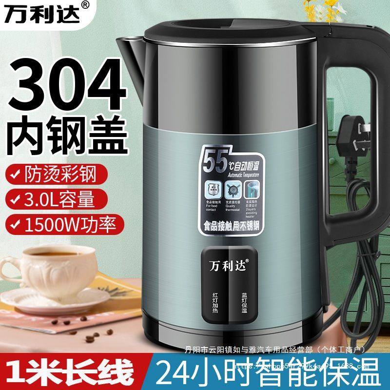 万利达电热水壶家用304不锈钢烧水壶保温一体宿舍智能恒温开