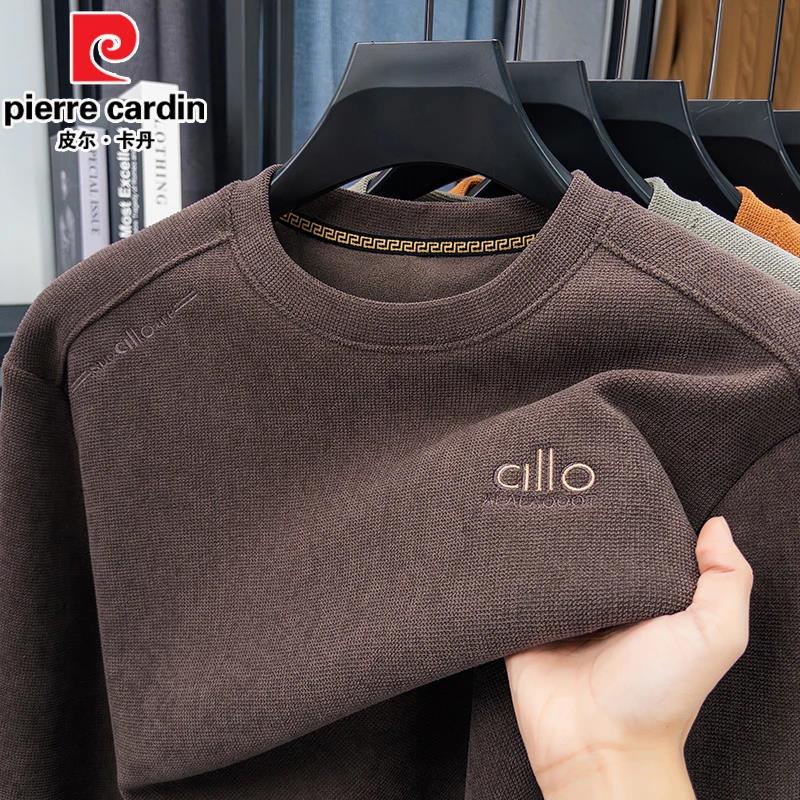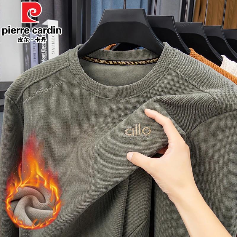 皮尔卡丹高档秋冬男士加绒加厚一体绒卫衣圆领保暖雪貂绒羊毛衫男