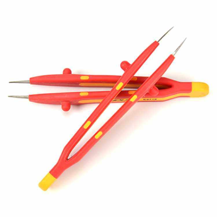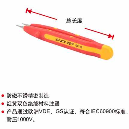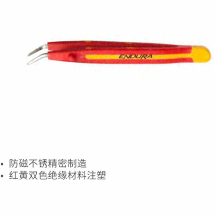 力易得[ENDURA]双色绝缘镊子,尖头无齿E9718 尖头无齿 130mm
