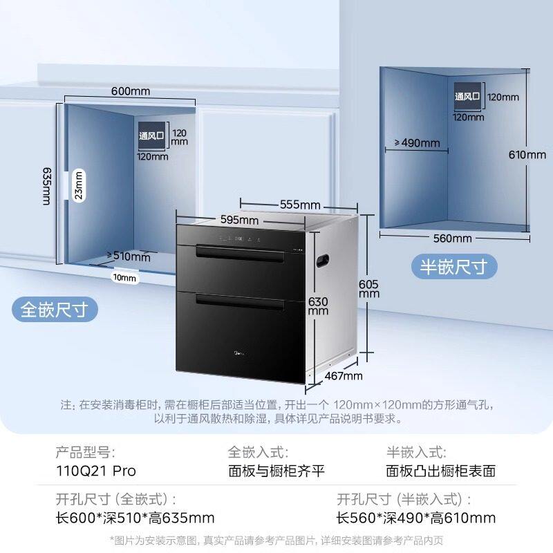 美的暖阳消毒柜嵌入式家用小型三层碗筷柜烘干一体110Q21Pro