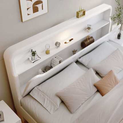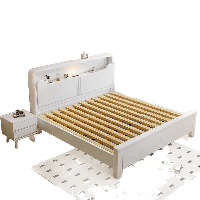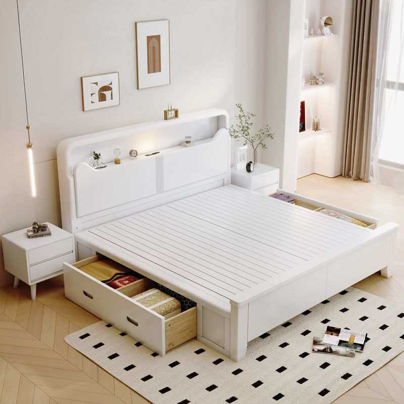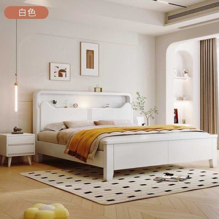 简约现代白色实木床.双人床卧室.单人高箱储物卧室成套家具