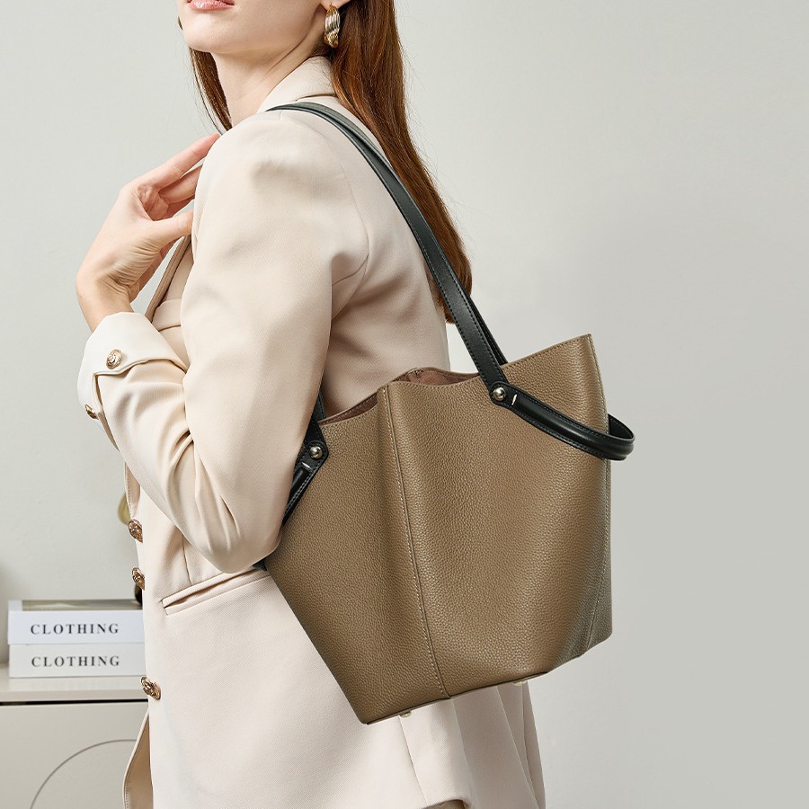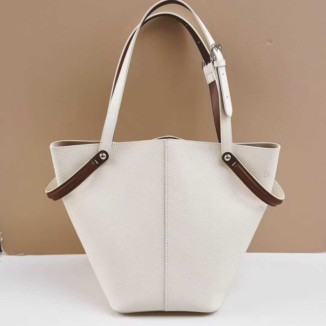 普洛克正品真皮头层牛皮水桶单肩包大容量通勤手提托特包斜挎包女