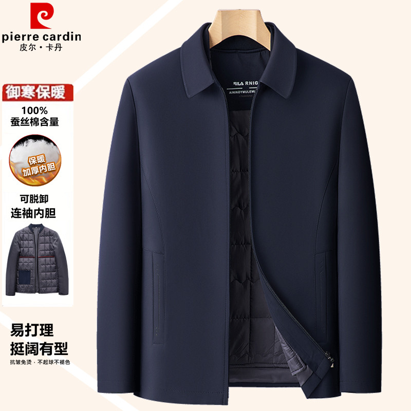 皮尔卡丹男士冬季加厚棉衣商务休闲保暖棉服中老年宽松爸爸装棉袄