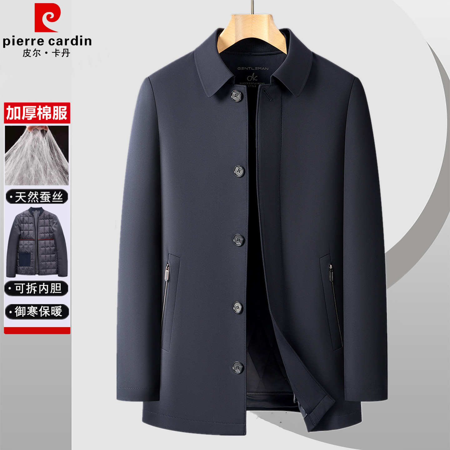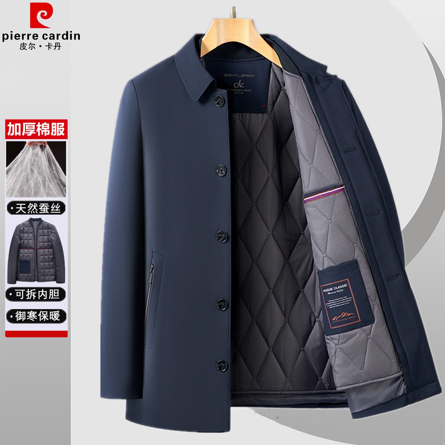 皮尔卡丹羽绒棉冬季加厚男士棉袄