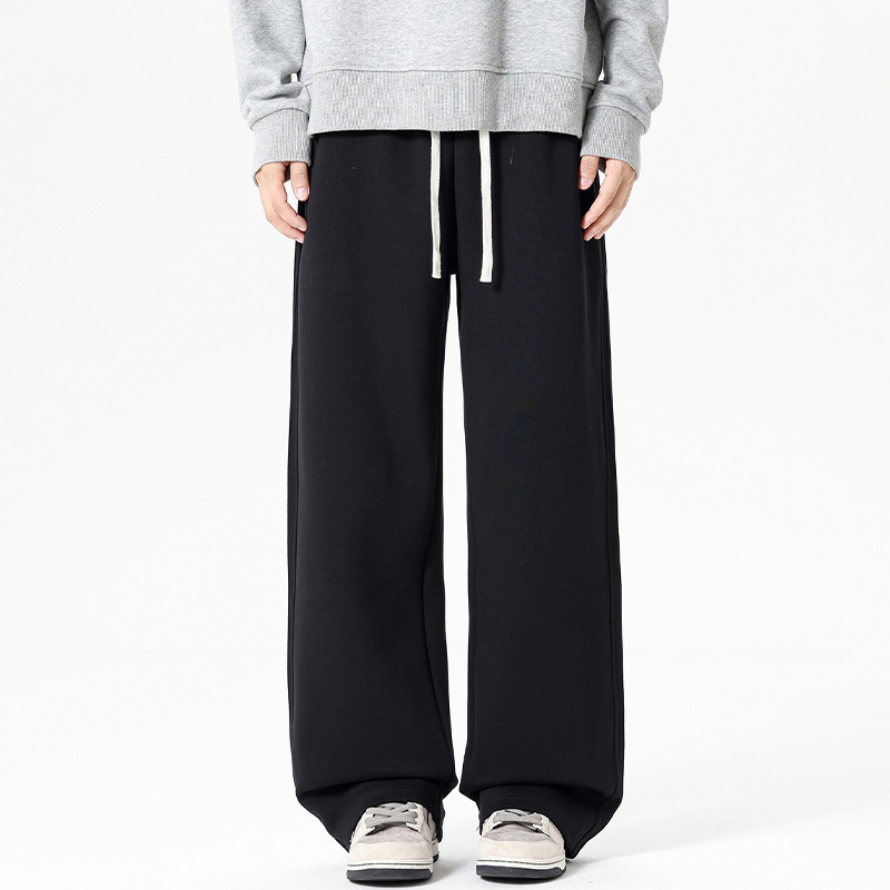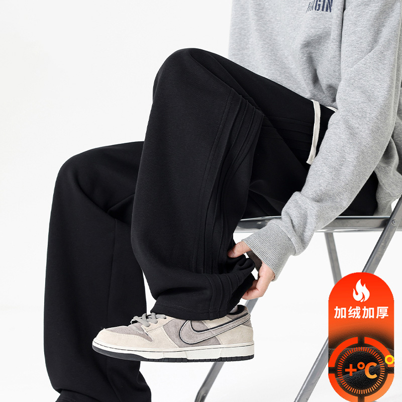 GXG冬季黑色加绒加厚重磅卫裤男2025秋冬新款运动宽松直筒休闲裤
