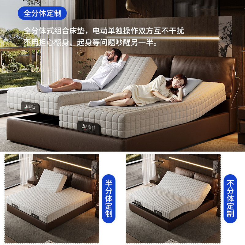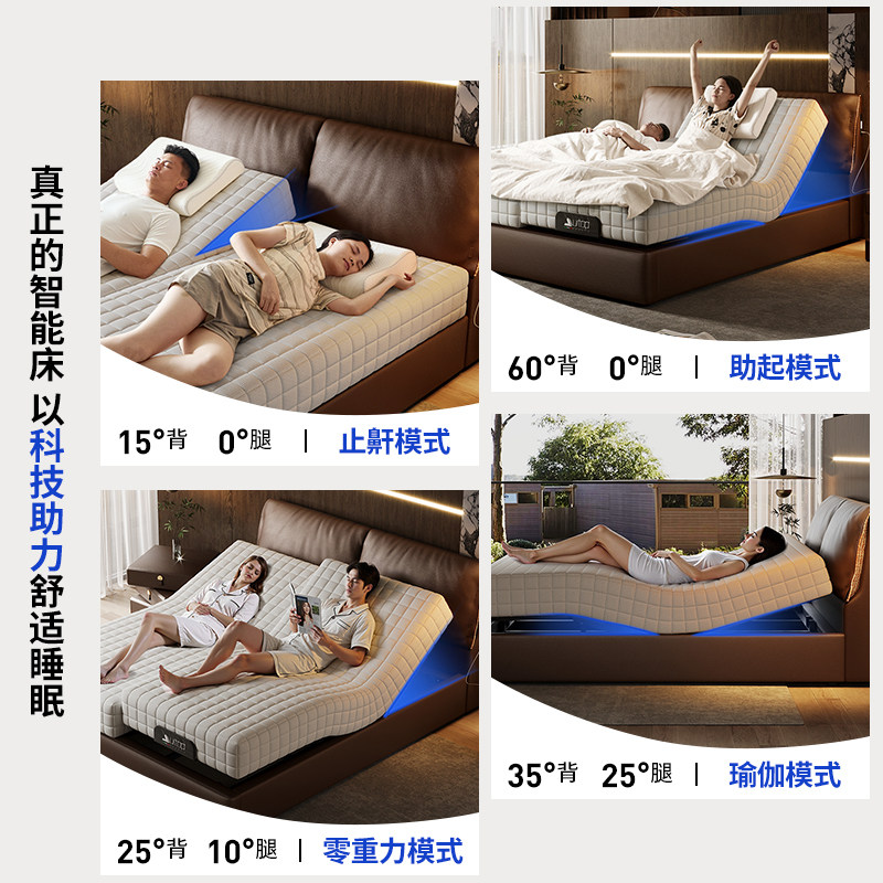 大象耳朵电动智能床真皮软包靠背落地床主卧室夫妻互不打扰双人床