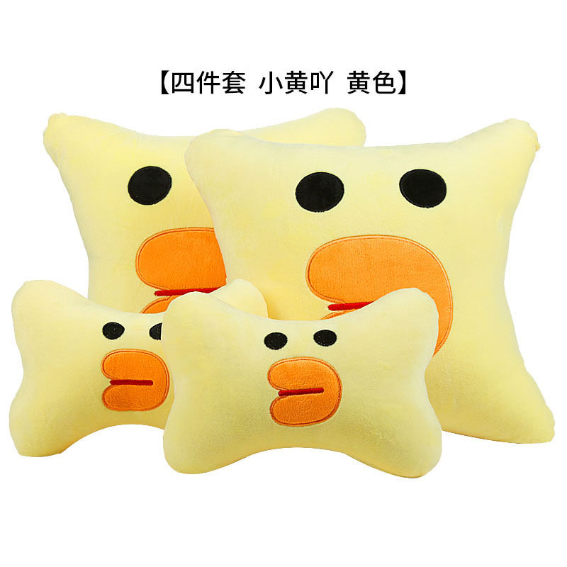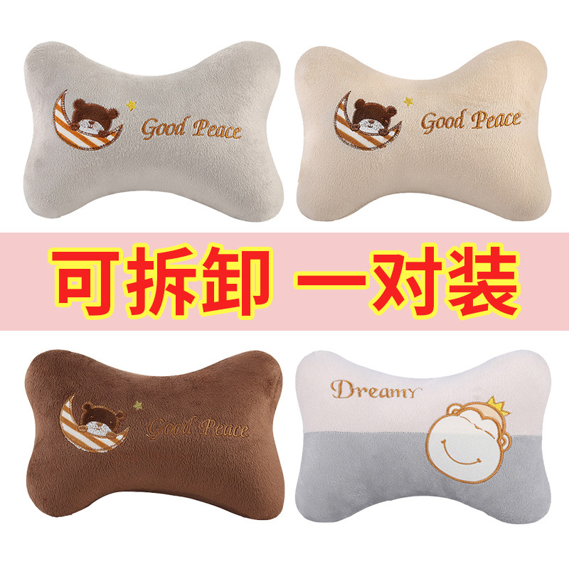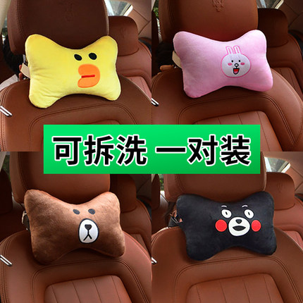 车载卡通创意毛绒头枕舒适护颈枕汽车用品内饰一对装车用枕头四季