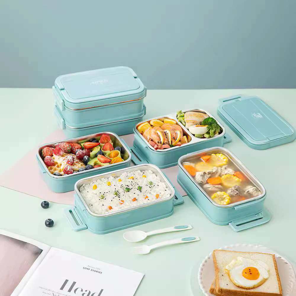 泰福高保温饭盒多层餐盘不锈钢学生上班族简约分格便携便当盒