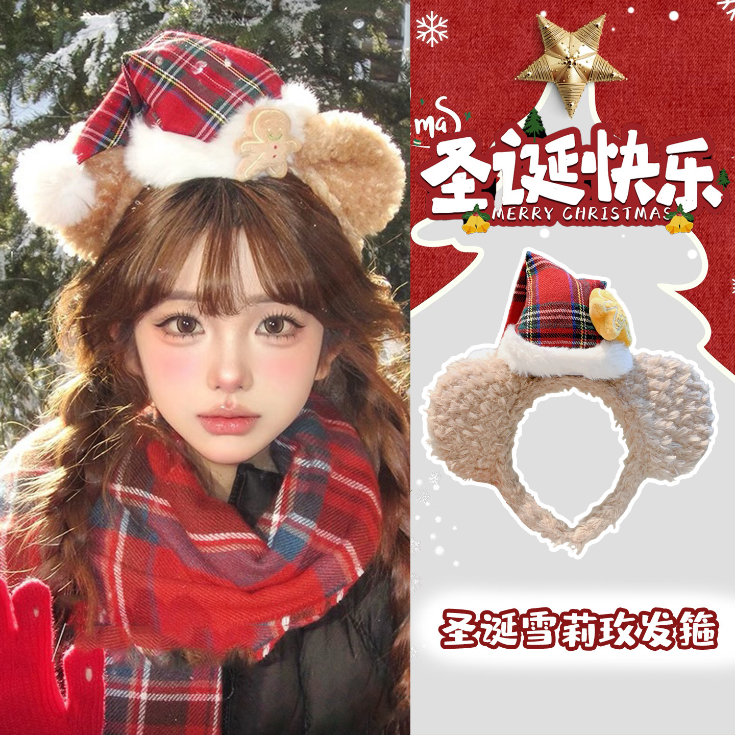 冬季圣诞节迪士尼雪莉玫毛绒发箍女可爱蝴蝶结装扮少女心头箍发饰