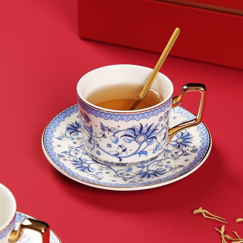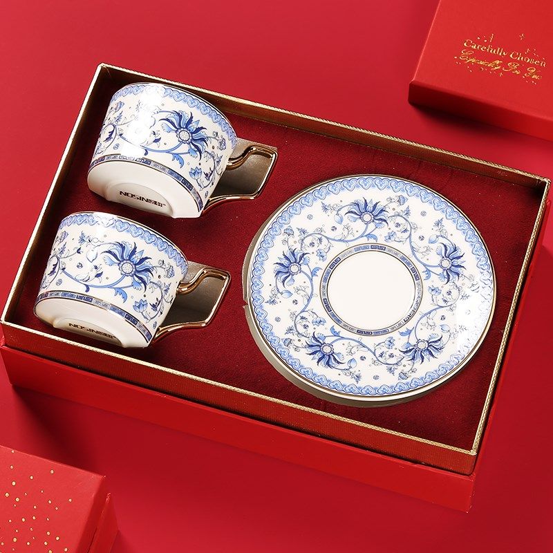 青花瓷送礼摆件手绘陶瓷茶具礼盒高档套装客厅Q茶几缠枝莲中式乔