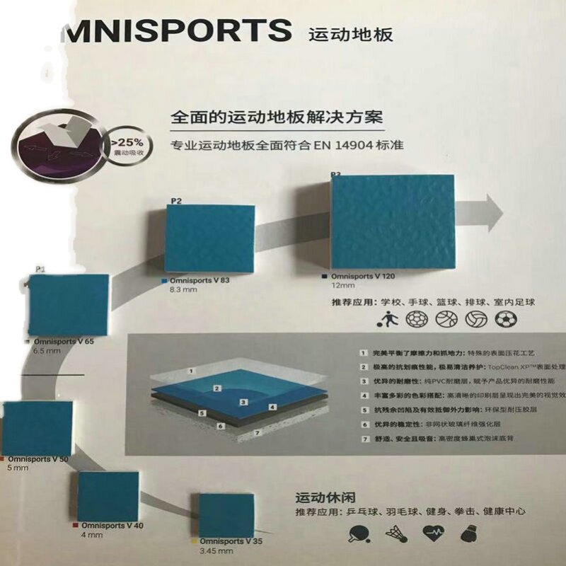 得嘉运动地板室内球场综合球馆篮球乒乓场健身房进口PVC卷材地胶