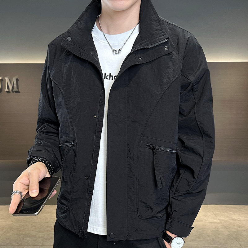 罗蒙男士外套秋季新款潮流立领宽松上衣服男休闲百搭工装夹克男装