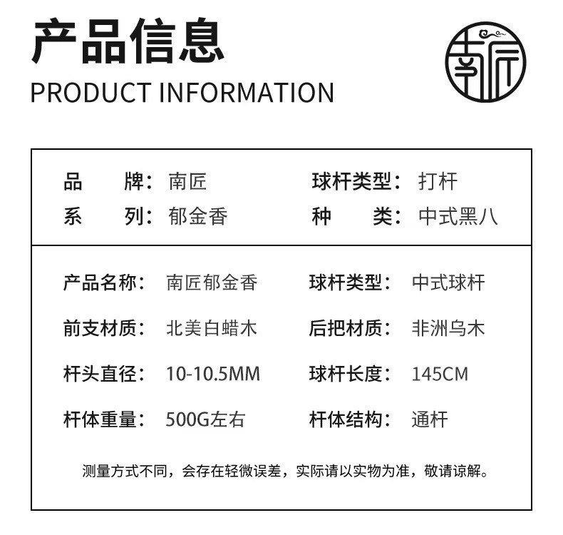 南匠郁金香球杆天成小头一体通杆免漆球杆中式八球斯诺克桌球杆