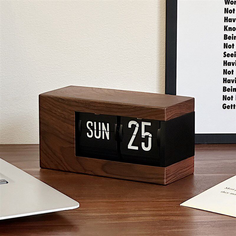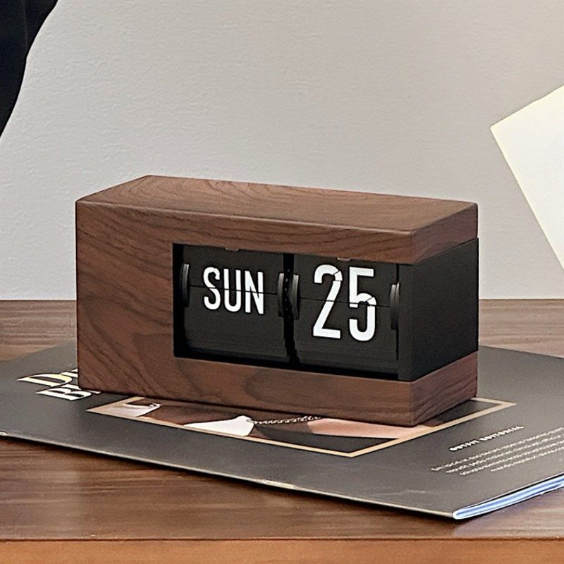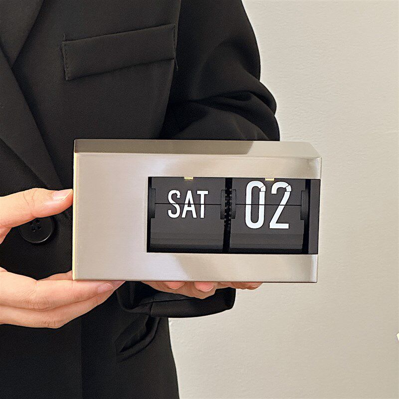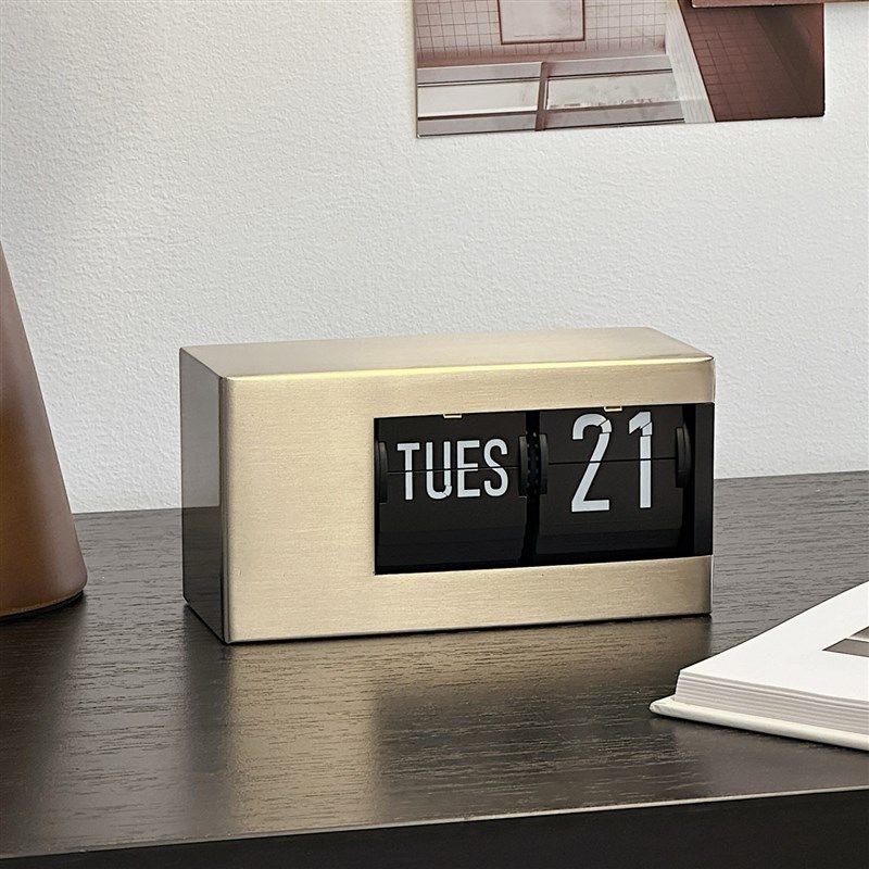 欧式机械翻页时钟带日历星期自动座钟摆台式客Q厅桌面复古装饰摆