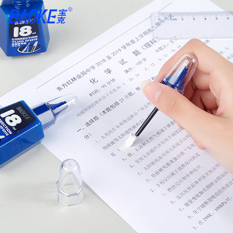 宝克修正液白色涂改液带刷快干型小学生用消字灵文具改正液修改错字笔退字神器消除笔迹图改液大容量办公批发