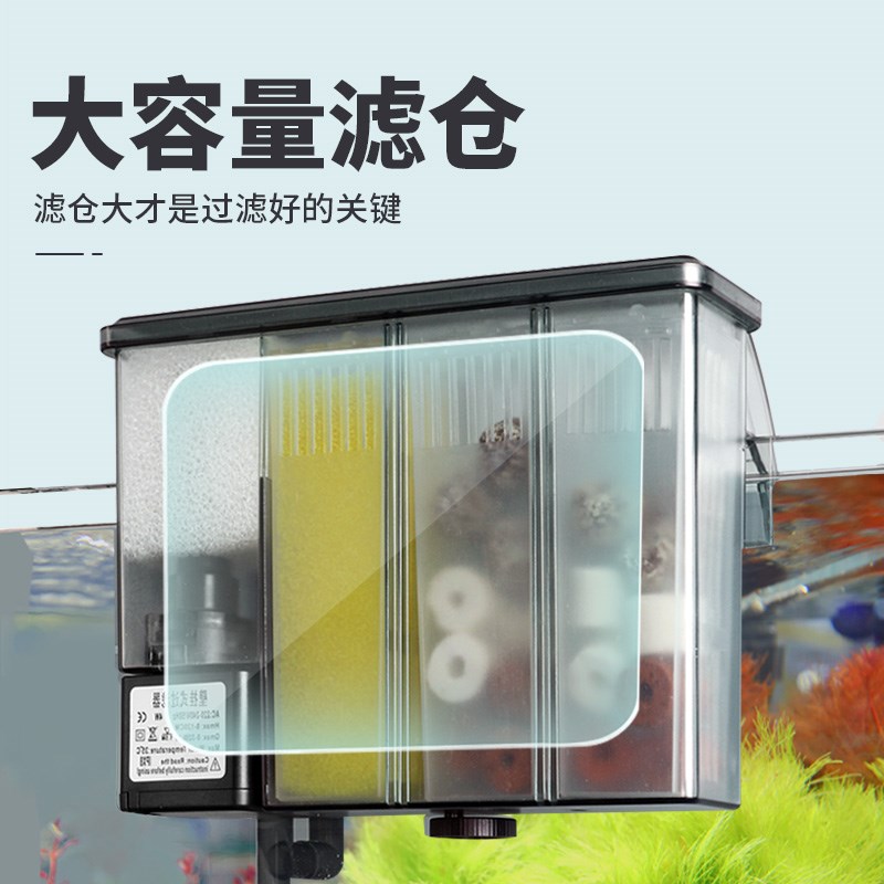 鱼缸过滤器增氧一体机循环抽水泵小型瀑布壁挂式过滤桶净水三合一
