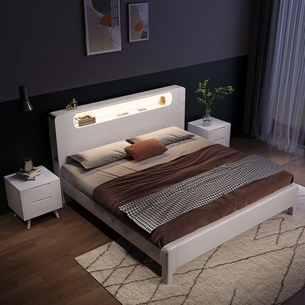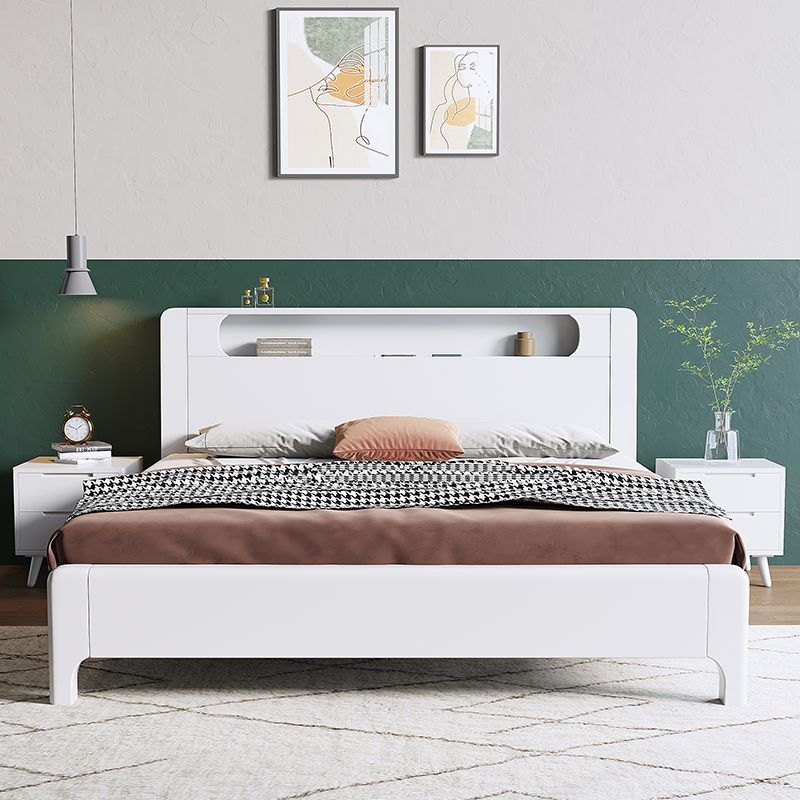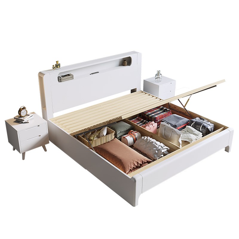 北欧实木床1.8米现代简约主卧双人婚床1.5米白色公主床轻奢储物床