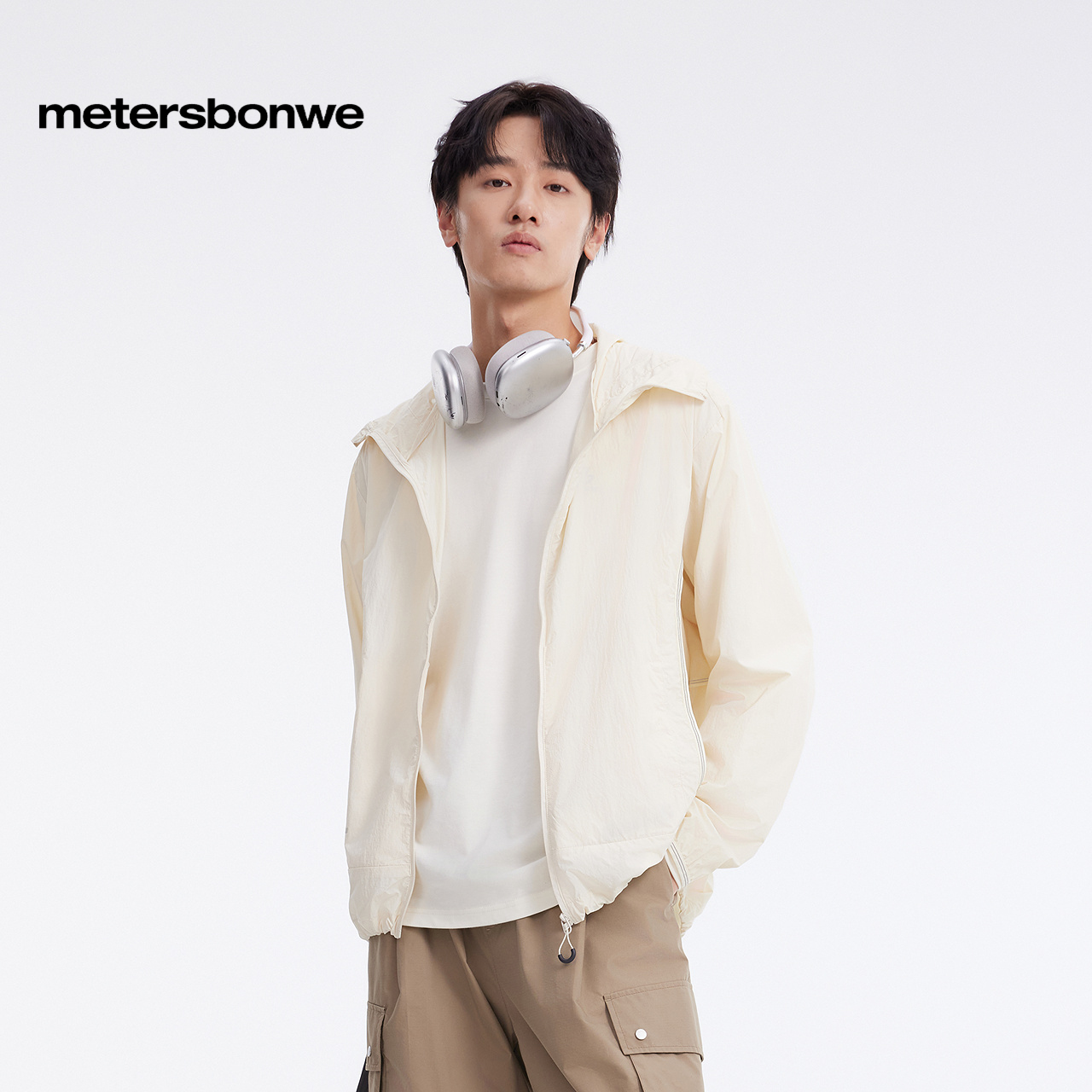 美特斯邦威夹克男女同款2025夏季新款户外山系透气防晒连帽外套男