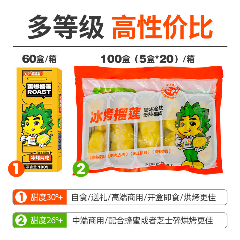 喜德农泰国冷冻金枕无核果肉蜜烤榴莲100g自助烧烤送礼冰烤两吃