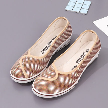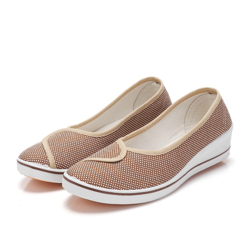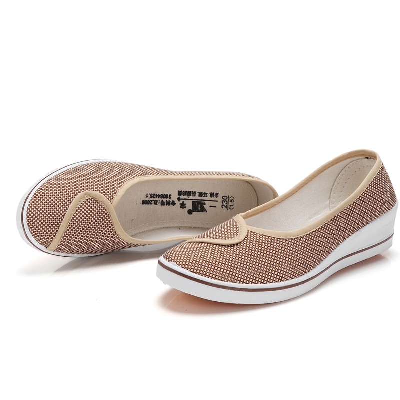 一字牌护士鞋棕色坡跟平底秋季美容鞋工作鞋小白鞋女士老北京布鞋