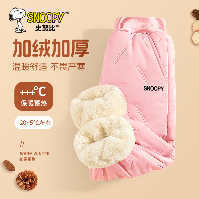 史努比女童裤子加绒加厚秋冬一体绒裤女孩棉裤2026新款儿童保暖裤