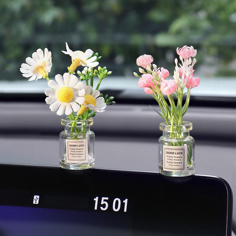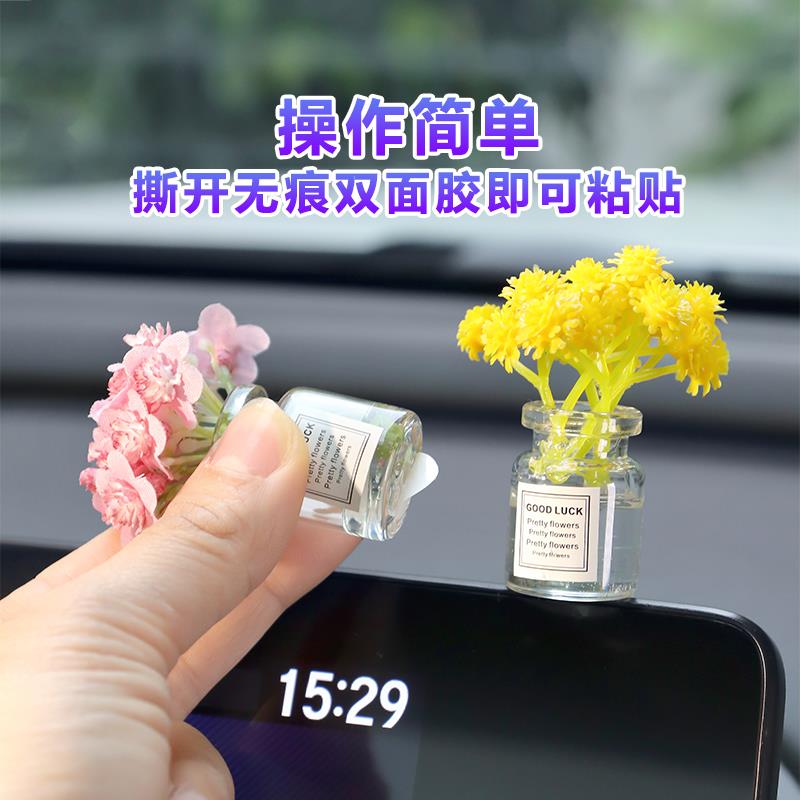 治愈系小花瓶车内饰品摆件汽车中控台车载屏幕花束女士车上装饰品