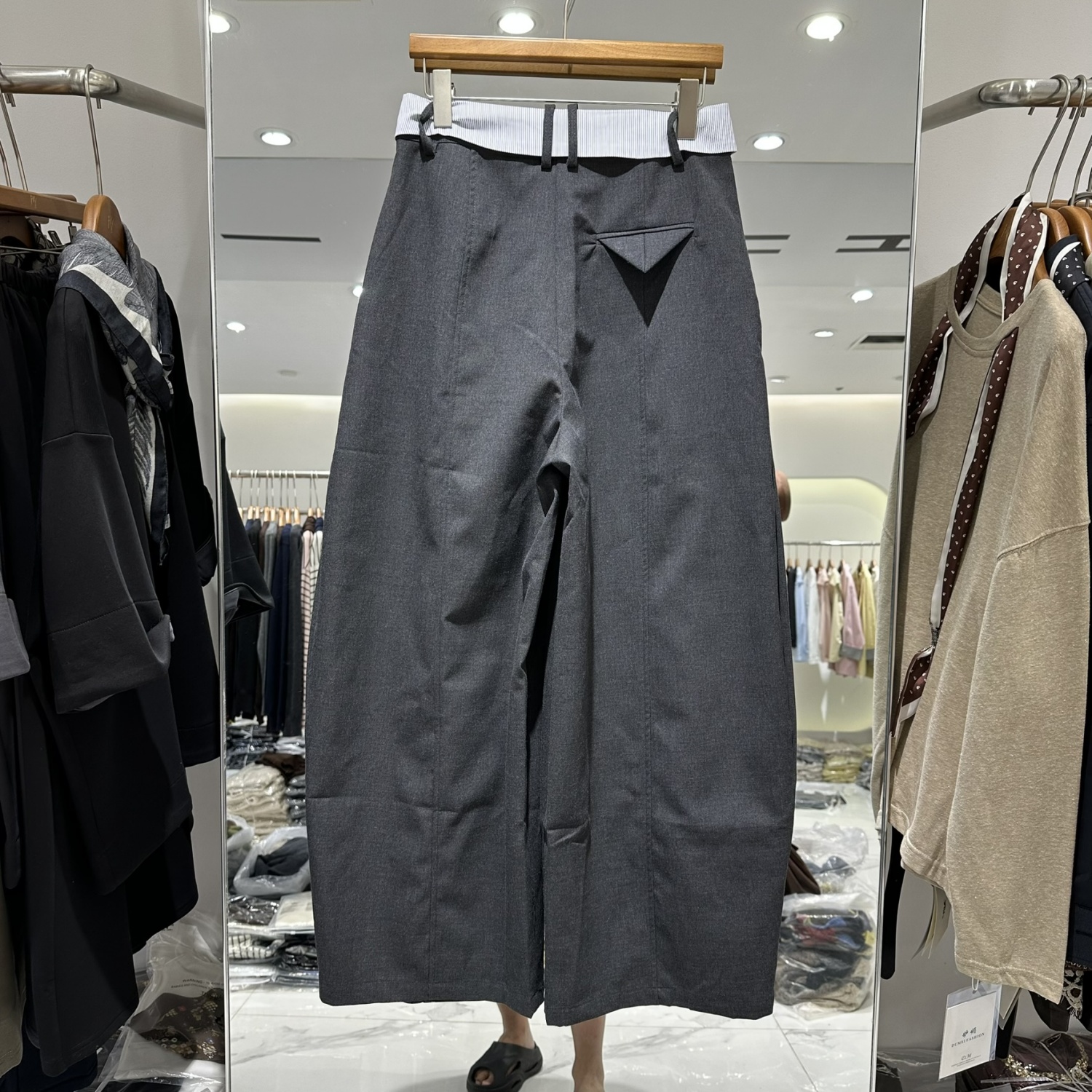 A25039欧洲站2025秋时尚百搭高腰显瘦宽松休闲撞色腰封阔腿弯刀裤