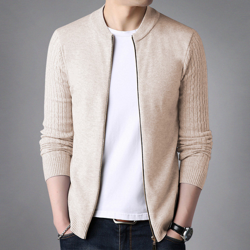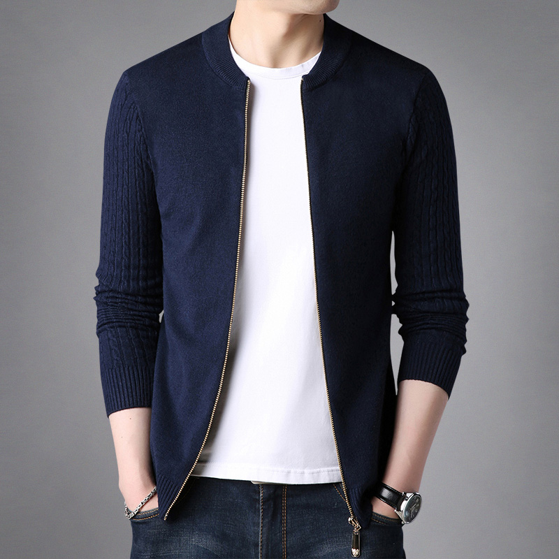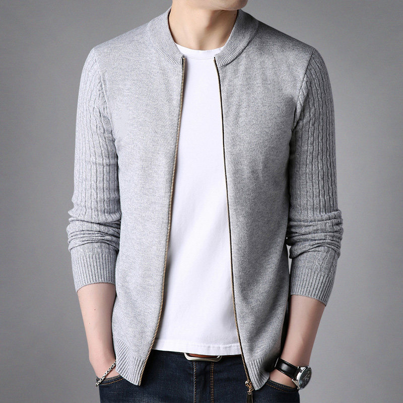 男士毛衣拉链开衫薄款针织衫韩版修身棒球领夹克衫纯色卫衣服外套