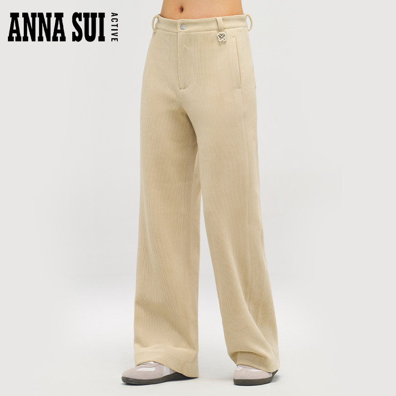 ANNA SUI安娜苏运动 巴恩风灯芯绒条绒保暖休闲裤直筒裤