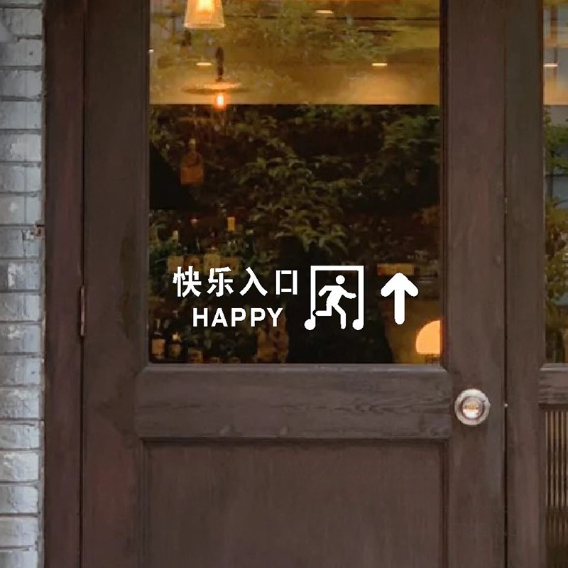 快乐入口 创意门头提示贴纸 咖啡美甲奶茶服装店铺玻璃门装饰墙贴