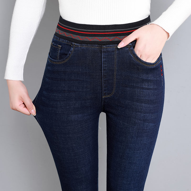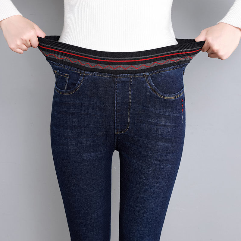加绒加厚小脚铅笔高腰牛仔裤女松紧腰弹力紧身显瘦显高秋冬新款简