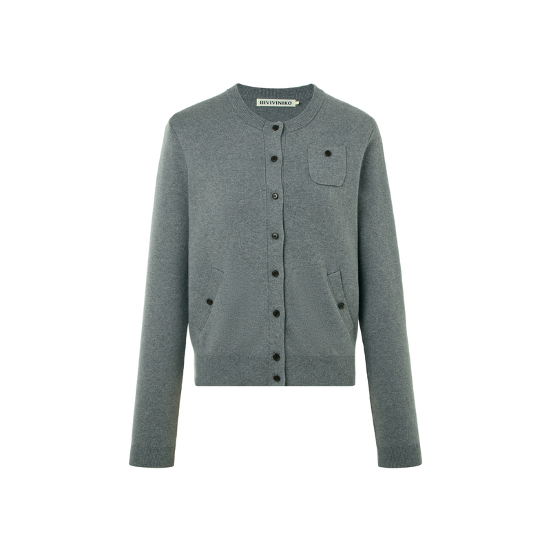 【棉羊绒混纺】IIIVIVINIKO秋季新款精致通勤圆领针织开衫女