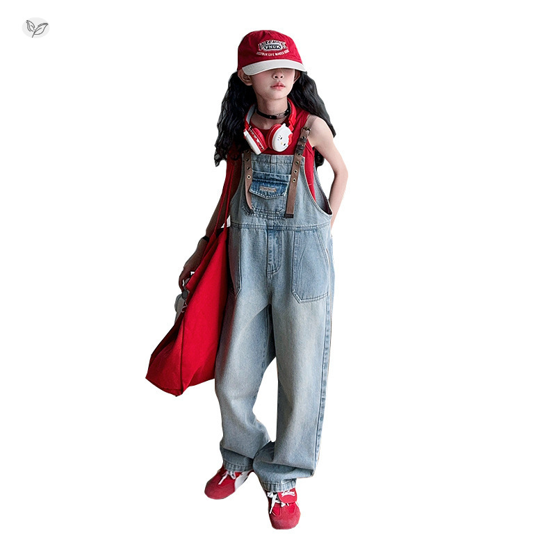 女童背带裤套装2025夏季新款中大童美式复古背心贴标牛仔裤
