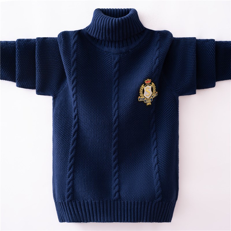 男童毛衣秋冬款加绒加厚儿童高领针织衫中大童洋气男孩纯棉打底衫