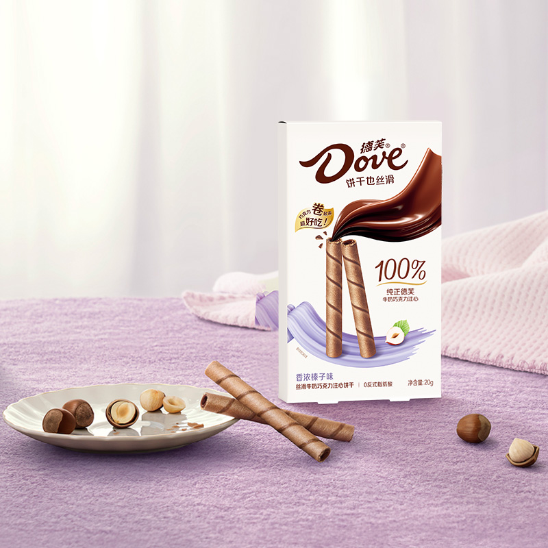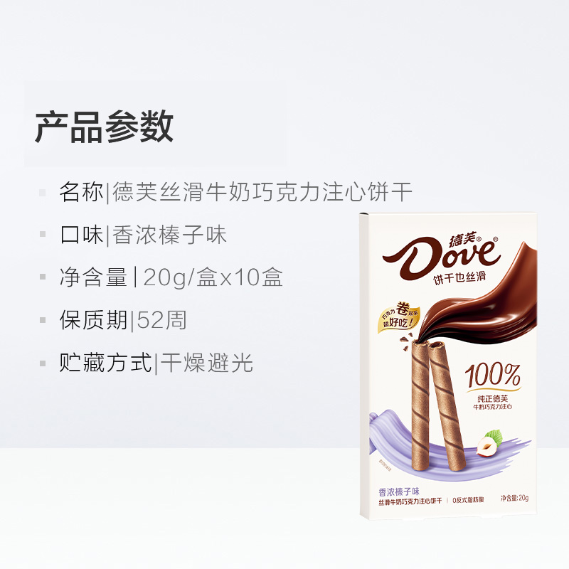 德芙香浓榛子味丝滑牛奶巧克力注心饼干20g*10盒休闲分享小零食