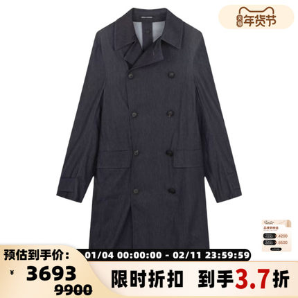 EMPORIO ARMANI 双排扣腰带男士长款风衣外套银泰百货 301604