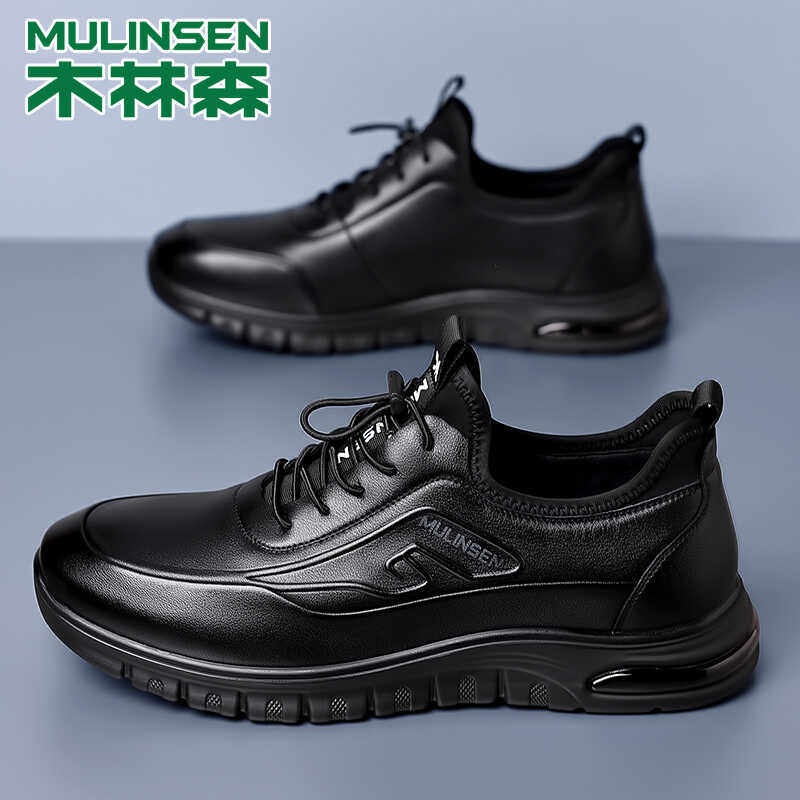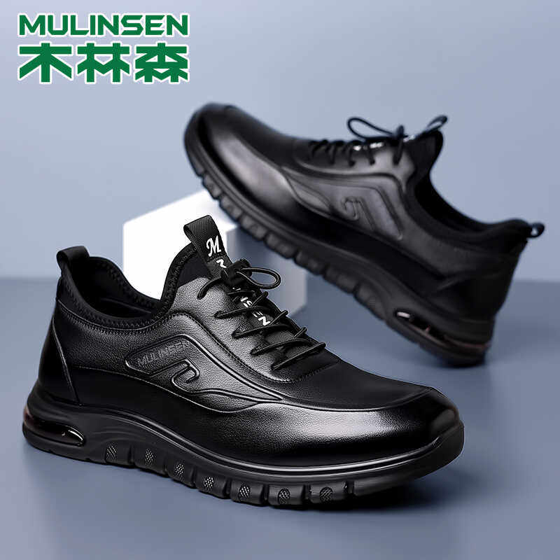 木林森男鞋秋季新款真皮透气头层牛皮运动皮鞋男全牛皮防水休闲鞋